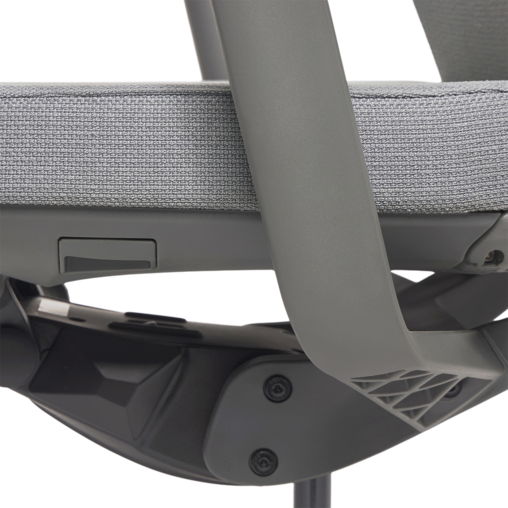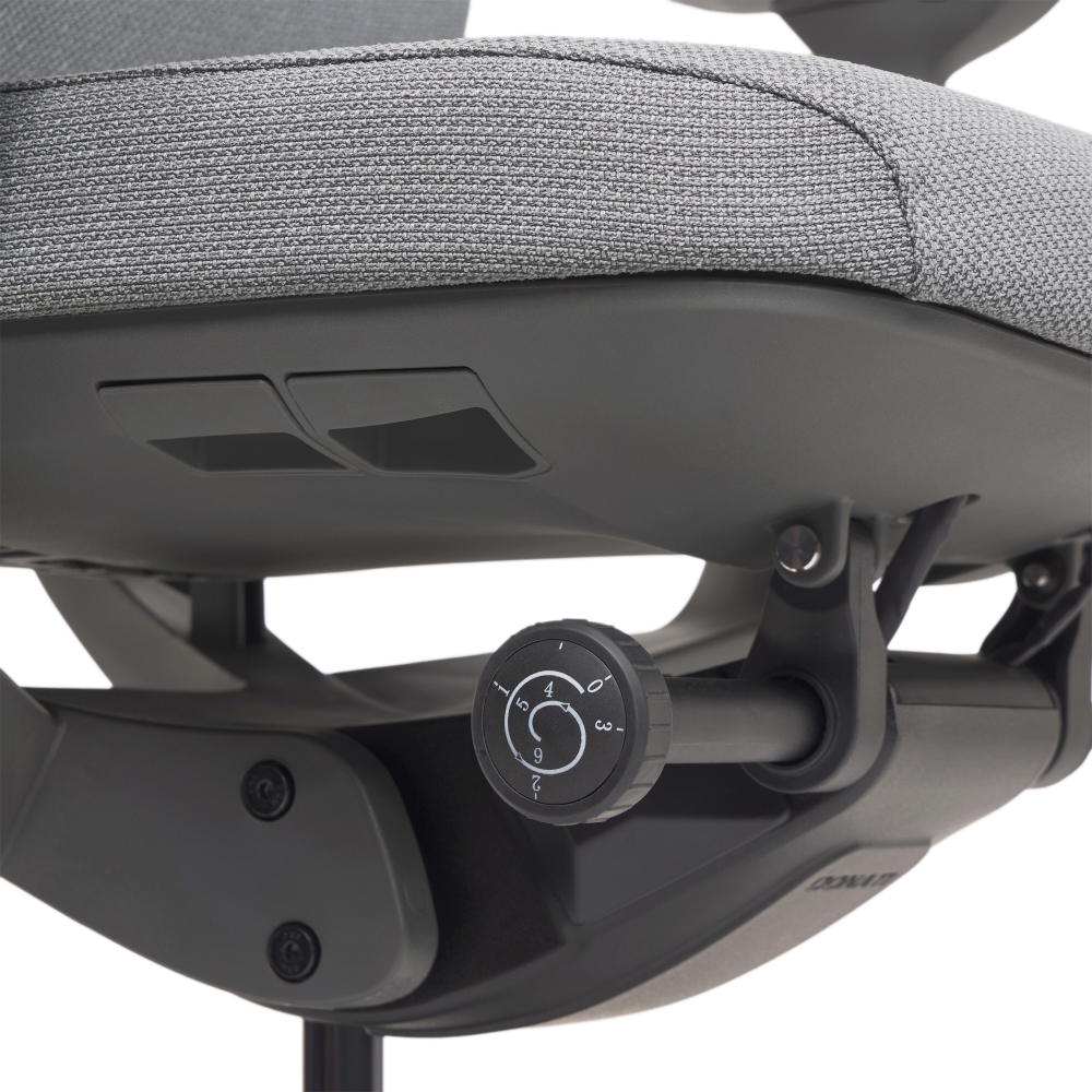 Conforme à la norme NEN--EN 1335, ce fauteuil est équipé d'un dossier inclinable, d'un soutien lombaire réglable, d'un mécanisme synchrone DONATI avec translation d'assise et accoudoirs réglables en 4D.