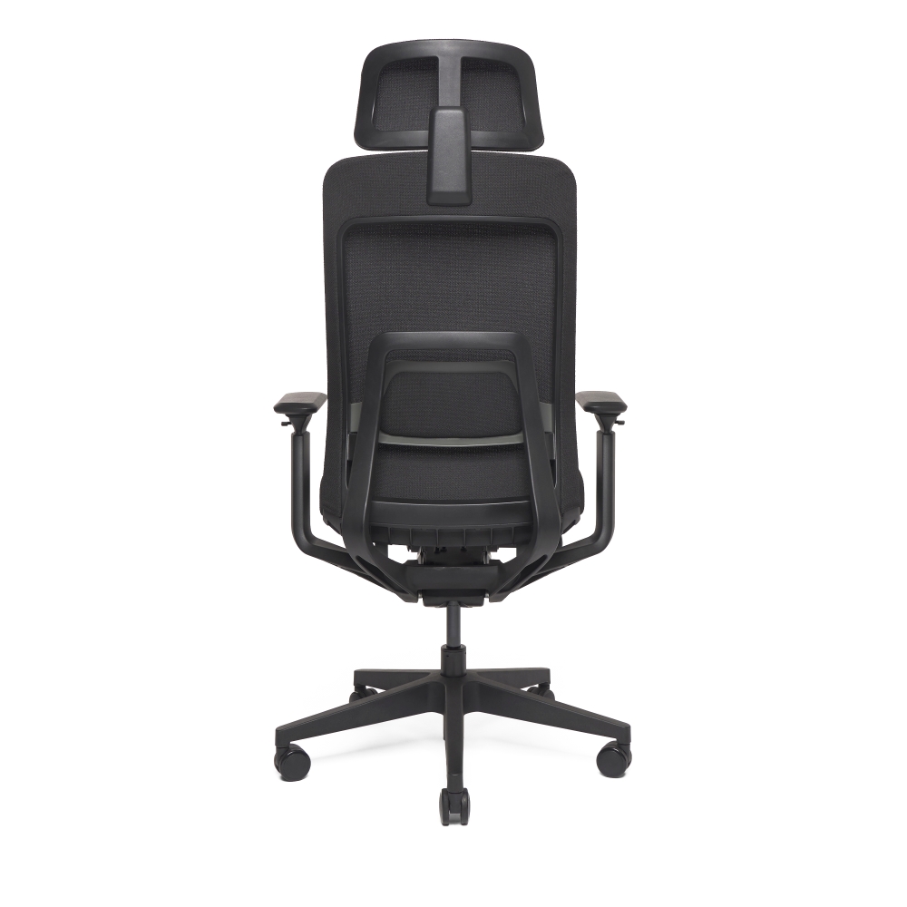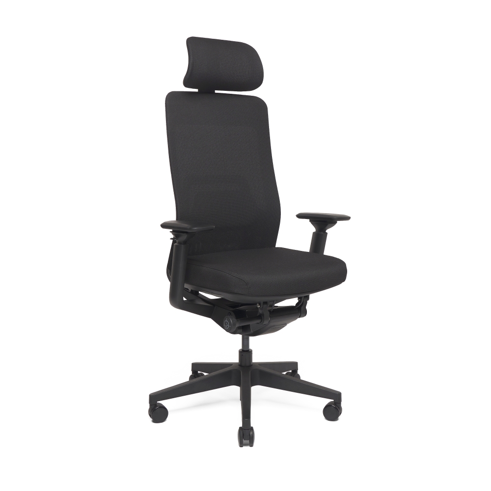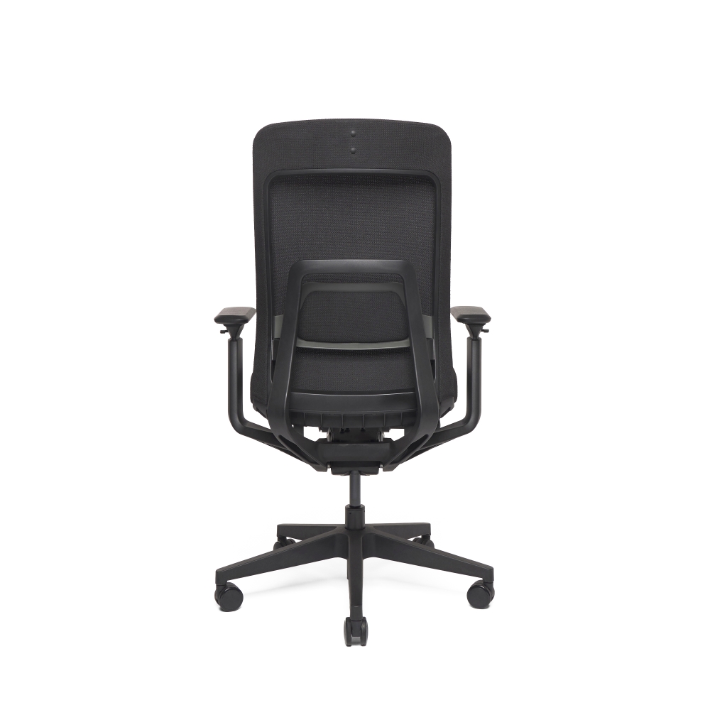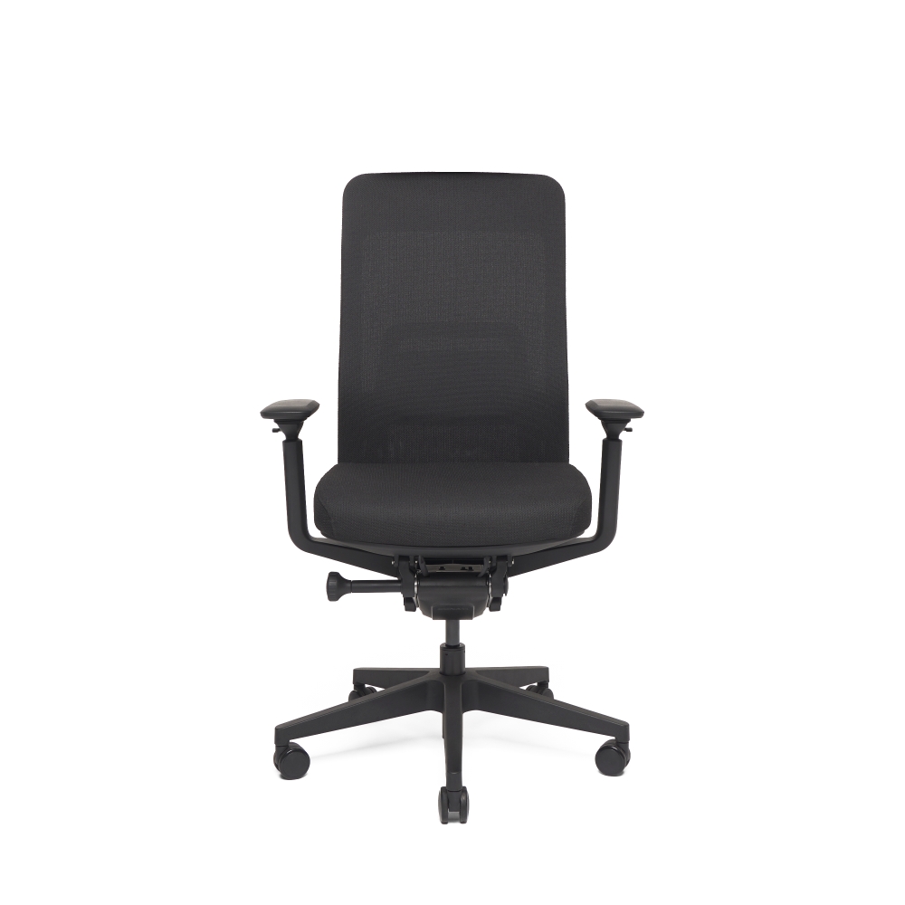 Conforme à la norme NEN--EN 1335, ce fauteuil est équipé d'un dossier inclinable, d'un soutien lombaire réglable, d'un mécanisme synchrone DONATI avec translation d'assise et accoudoirs réglables en 4D.