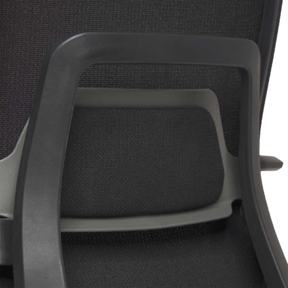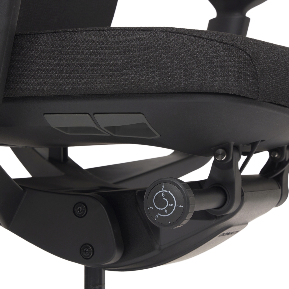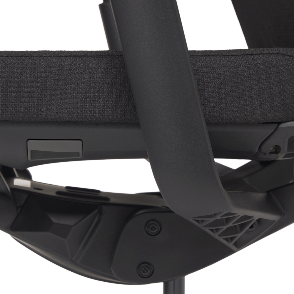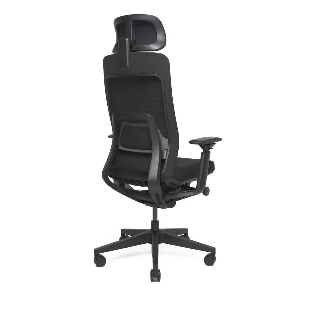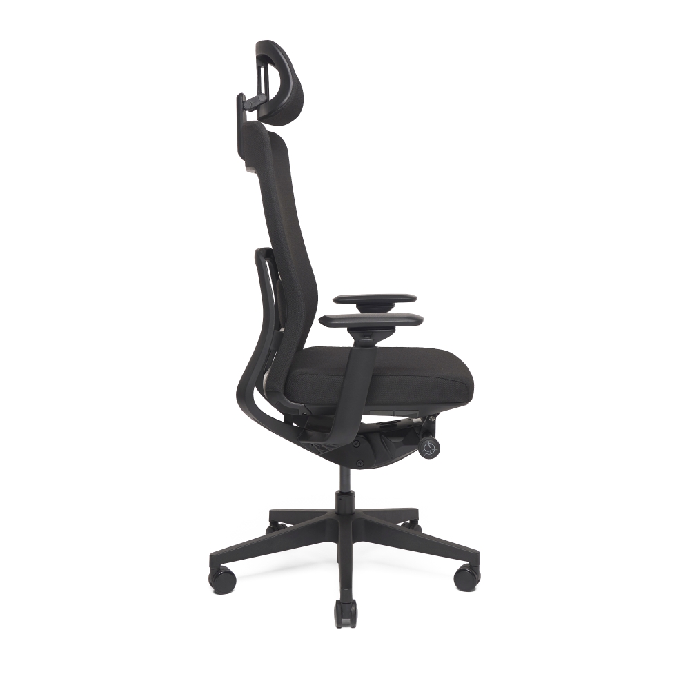 Conforme à la norme NEN--EN 1335, ce fauteuil est équipé d'un dossier inclinable, d'un soutien lombaire réglable, d'un mécanisme synchrone DONATI avec translation d'assise et accoudoirs réglables en 4D.